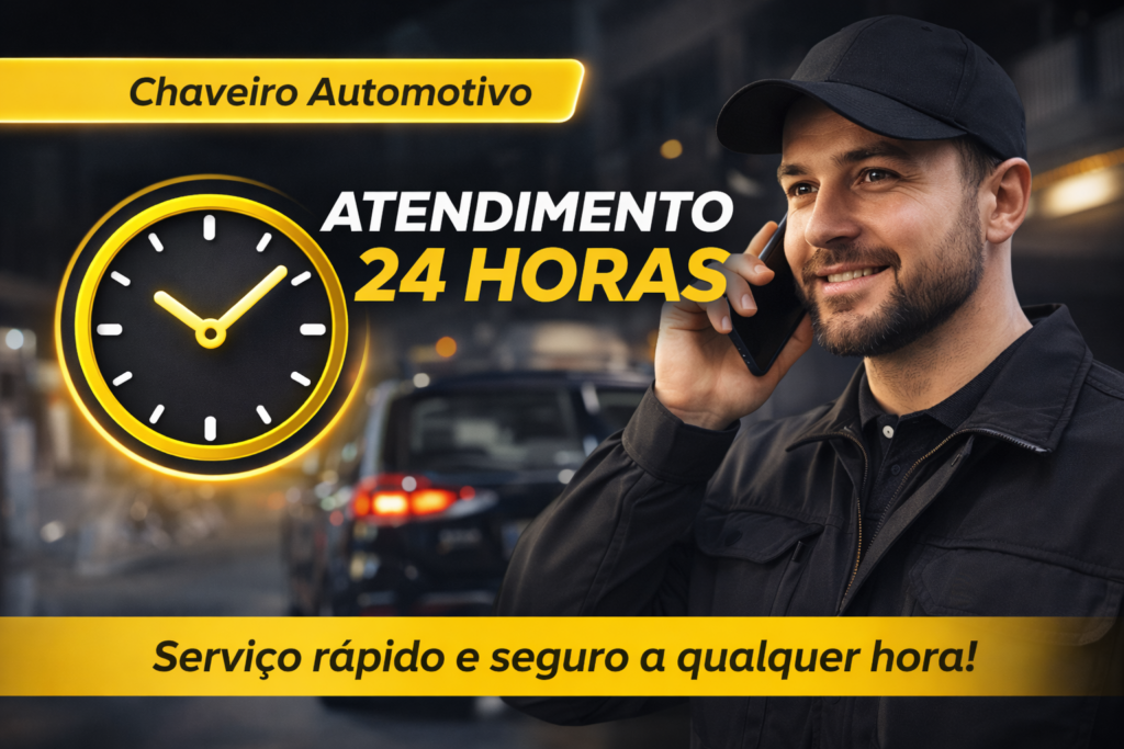 Oferecemos atendimento 24 horas para situações de emergência, seja de madrugada, em feriados ou aos domingos. Sabemos que imprevistos podem acontecer a qualquer momento, como perder a chave ou trancar o carro com a chave dentro.